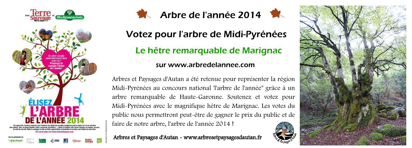 Nous avons donc besoin de vous : soutenez Midi-Pyrénées et votez pour le magnifique Hêtre de Marignac. Les votes nous permettront peut-être de gagner le prix du public et de faire du Hêtre de Marignac, l’arbre de l’année 2014 !