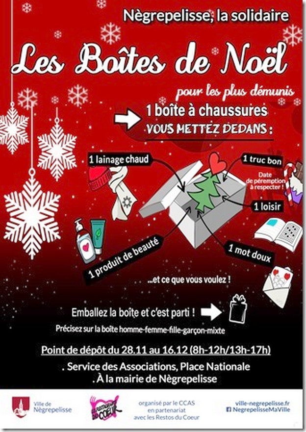 « Les boites de Noël » … à Nègrepelisse (82) A côté de chez nous, Solidarité, N° 201 - Décembre 2022 Jusqu’au vendredi 16 décembre 2022 Information communiquée par Aurore DEFFRENE Partager : Cliquer pour envoyer un lien par e-mail à un ami(ouvre dans une nouvelle fenêtre) E-mail Cliquez pour partager sur Facebook(ouvre dans une nouvelle fenêtre) Facebook Cliquez pour partager sur WhatsApp(ouvre dans une nouvelle fenêtre) WhatsApp J’aime ça :J’aime chargement… Similaire SolidaritéboitesNègrepelisseNoël