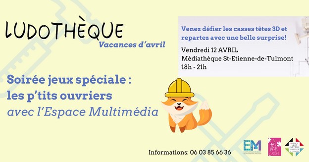 Profitez d’une soirée spéciale construction, chantier… p’tits ouvriers ! Mais en plus : avec l’espace Multimédia venez défier les casses têtes 3D et repartez avec une belle surprise !