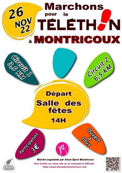 • OÙ :Salle des fêtes – 82800 MontricouxAtout sport Montricoux participe à la campagne de collecte de fonds au profit du Téléthon.