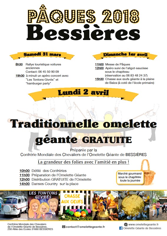 Organisateur : Confrérie Mondiale des Chevaliers de l‘Omelette Géante de Bessières