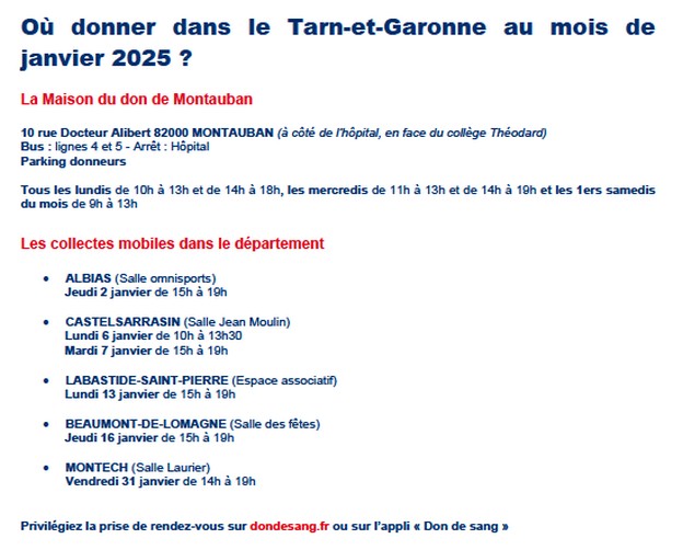 Don du sang en janvier 2025 dans le Tarn & Garonne: