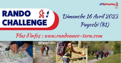 Le Rando Challenge® est une épreuve ludique, conviviale et sportive mettant à l’épreuve certaines compétences des randonneurs (orientation, lecture de carte, observation…). Constitué en équipes de 2 à 6 personnes (licenciés ou non à la FFRandonnée), chaque formation doit parcourir un itinéraire à une vitesse fixée, en s’approchant d’un temps cible à calculer et à atteindre le plus justement possible ! Tout au long du parcours sont disposées des bornes. Les participants doivent dans un premier temps, reporter correctement leur emplacement sur la carte. Ensuite, sur chaque borne figure une affirmation avec trois réponses possibles. L’équipe doit choisir la ou les bonnes réponses. À l’arrivée, un classement des équipes est effectué en tenant compte des écarts de temps, de l’exactitude du positionnement des bornes sur la carte et des réponses données à chacune des questions.