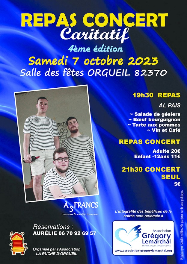 Samedi 7 octobre 2023, à 19h.30 à la salle des fêtes.