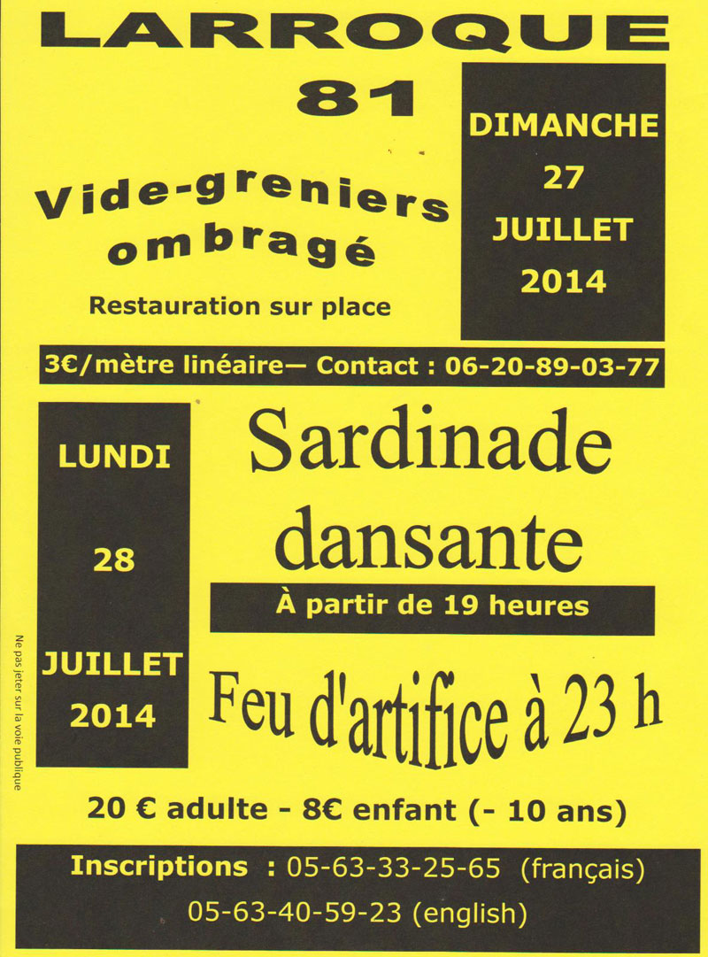 La falaise de Larroque sera aux premières loges de la traditionnelle Sardinade dansante organisée par le comité des fêtes le dimanche 27 et lundi 28 juillet 2014 !