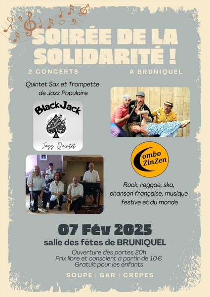 Venez nous rejoindre pour une magnifique soirée de la solidarité à Bruniquel le vendredi 7 février 2025 ! Pour l’occasion nous vous proposons deux concerts :