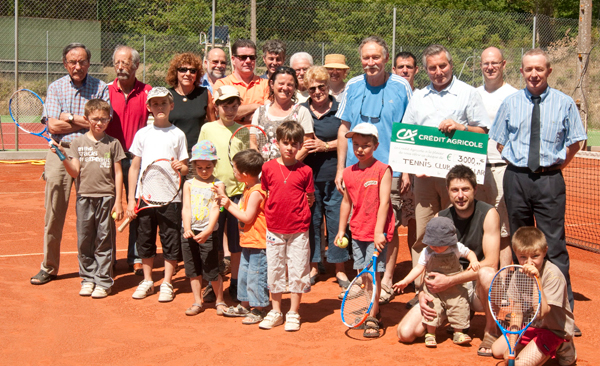 A cette occasion et en présence de Jean Paul ALBERT, conseiller général, Monsieur MASSEREY et Monsieur SAINTIS , respectivement Président et Directeur de caisse locale de Crédit Agricole ont remis un chèque de 3000 euros pour leur participation à la réalisation des courts de tennis.