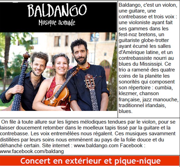 CONCERT de Musique Nomade avec le groupe » BALDANGO »