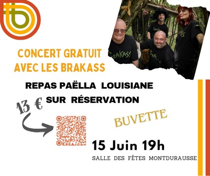 Repas au profit de l’association, animé par le groupe “Les Brakass” (compositions de chanson française rock)