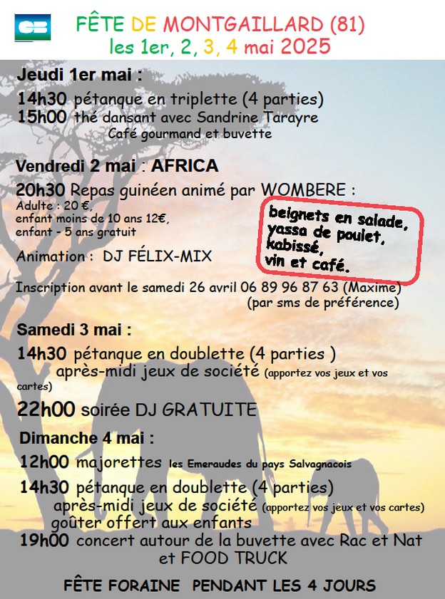 Jeudi 1er vendredi 2, samedi 3 et dimanche 4 mai 2025, voir le programme: