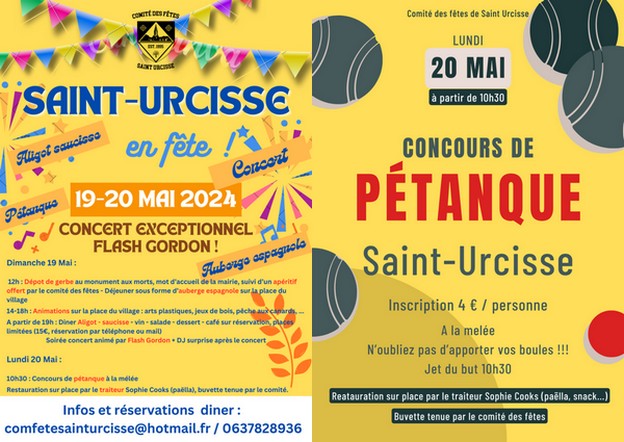 Point d’orgue traditionnel de l’année 2024, nous sommes heureux de vous convier à la fête de Saint-Urcisse à l’occasion du week-end de Pentecôte, nous vous espérons nombreux pour célébrer ensemble l’arrivée des beaux jours dans la convivialité.
