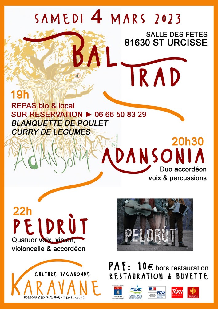 Samedi 4 mars 2023, 19h repas, 20h.30 duo accordéon.