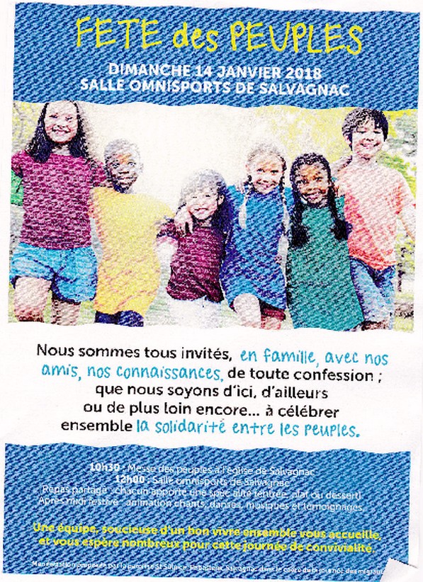 Tous invités, en famille, avec amis et connaissances, de toute confession; que nous soyons d’ici, d’ailleurs ou de plus loin encore, à célébrer ensemble la solidarité entre les peuples…