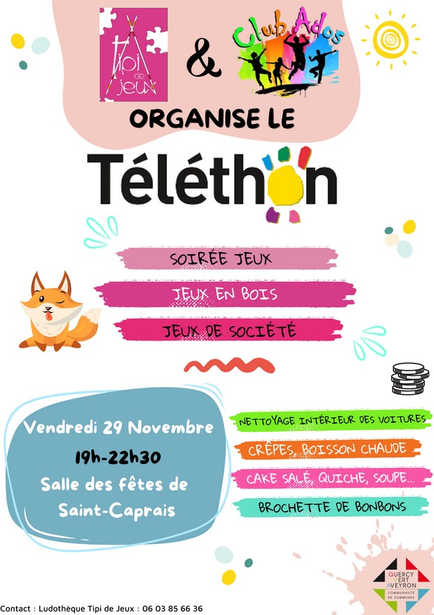 La ludothèque Tipi de Jeux et le club ado de la Communauté de Communes Quercy Vert Aveyron organise le téléthon !