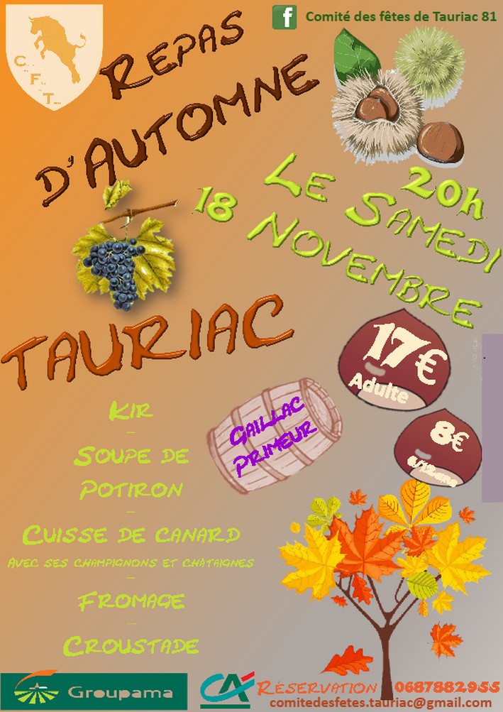 Merci de réserver (06 87 88 29 55) avant le 8 novembre 2017