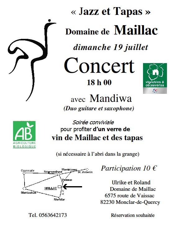 Dimanche 19 juillet 2020, 18h. au Domaine de Maillac.
