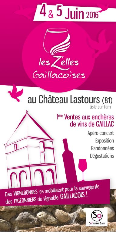 Les Samedi 4 et Dimanche 5 Juin 2016, les vigneronnes Gaillacoises se mobilisent pour la sauvegarde des pigeonniers. Randonnée pédestre, circuit cyclo, rallye, voiture, conférence, apéro-concert, etc.