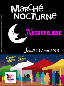 L’association Box Relais, qui a pour vocation de dynamiser les centres villages et cœurs de quartiers, fait son marché nocturne le Jeudi 13 Aout 2015 à Nègrepelisse.