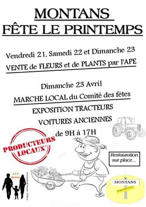 L’A.P.E et le comité des fêtes de Montans s’associent pour fêter le printemps, du vendredi 21 au dimanche 23 avril 2017.