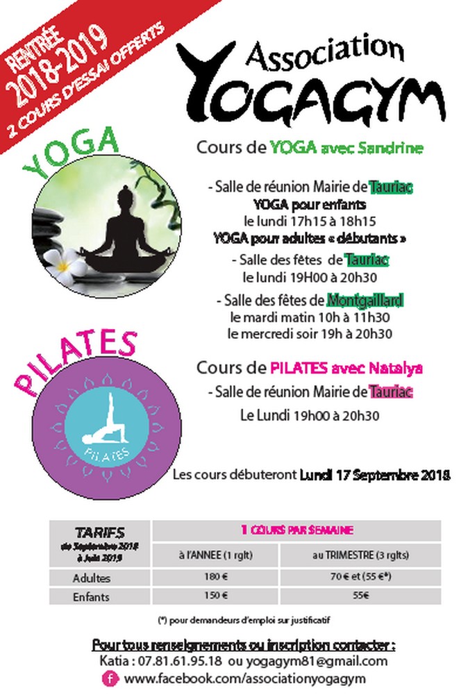 Reprise des cours à partir du lundi 17 septembre 2018 à Tauriac et Montgaillard.