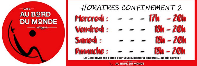 MERCREDI 23 décembre 10h – 20h► FETE DES STOCKS !MERCREDI 23 décembre 18h – 20h► LES BRUSCHETTAS DE NOËL de MAMMA Marjorie !Réservation au Café : 05 63 55 14 52► Même sous LA Covid, le Café garde le contact !12 Allées Jean Jaurès, 81630 Salvagnac05 63 55 14 52Information communiquée par l’équipe du Café