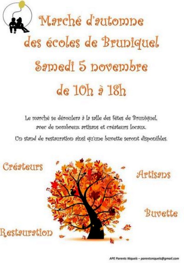 Marché d’automne avec de nombreux artisans et créateurs de 10h à 18h à la salle des fêtes de Bruniquel.