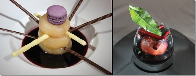 Le chef est également créateur de succulents déserts, comme ces pèches : plates pochées au sirop, jaune pochée au vin qui vous transporteront sans nul doute… au septième ciel !!!