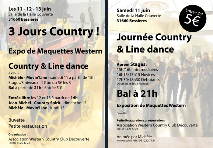 3 Journées Country Line Dance organisée par l’association « Western Club Découvertes » à la Salle de la Halle Couverte – Centre village, les 11, 12 et 13 Juin 2011.