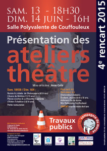 Présentation des Ateliers Théâtre de la MJC Rabastens-Couffouleux dirigés par Anne Colin les Samedi 13 juin 2015 à 18h30 et Dimanche 14 juin 2015 à 16h, Salle Polyvalente de Couffouleux.