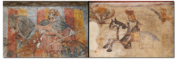 Dès le Moyen Age, des fresques murales apparaissent dans le département et nous laissent ainsi en héritage une riche iconographie qui nous permet de voyager dans le temps comme ces scènes de tournois au château de Bioule et dans la Tour d’Arles à Caussade. (Le terme « fresque » vient de l’italien « a fresco » qui signifie « dans le frais ». C’est une technique particulière de peinture murale qui est réalisée sur un enduit avant qu’il ne soit sec.)
