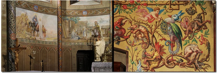 Sans oublier les peintures de René Gaillard-Lala, dans l’église Saint-Nazaire de Lunel. Ce peintre, né en 1893 à Vaïssac, a décoré plus de trente églises dans le Tarn-et-Garonne. Et à nouveau une œuvre de Louis Cazottes avec ce détail fantasmagorique d’une grande fresque réalisée dans la chapelle du Sacré Cœur de l’église Notre-Dame de l’Assomption de Caussade.