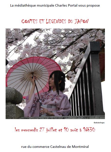 - Mercredis 27 Juillet et 10 Août 2016 : Écoutez les contes et légendes du Japon, le souffle du dragon, le vol de la grue et la poésie des fleurs de cerisiers.
