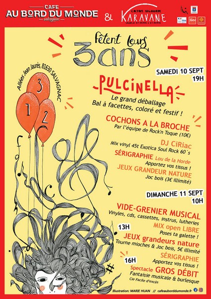 Pour fêter ces nombreuses énergies, le Café et Karavane vous invitent les 10 & 11 septembre à se retrouver sur les Allées Jean Jaurès, afin de festoyer ensemble notre anniversaire et cette nouvelle rentrée…