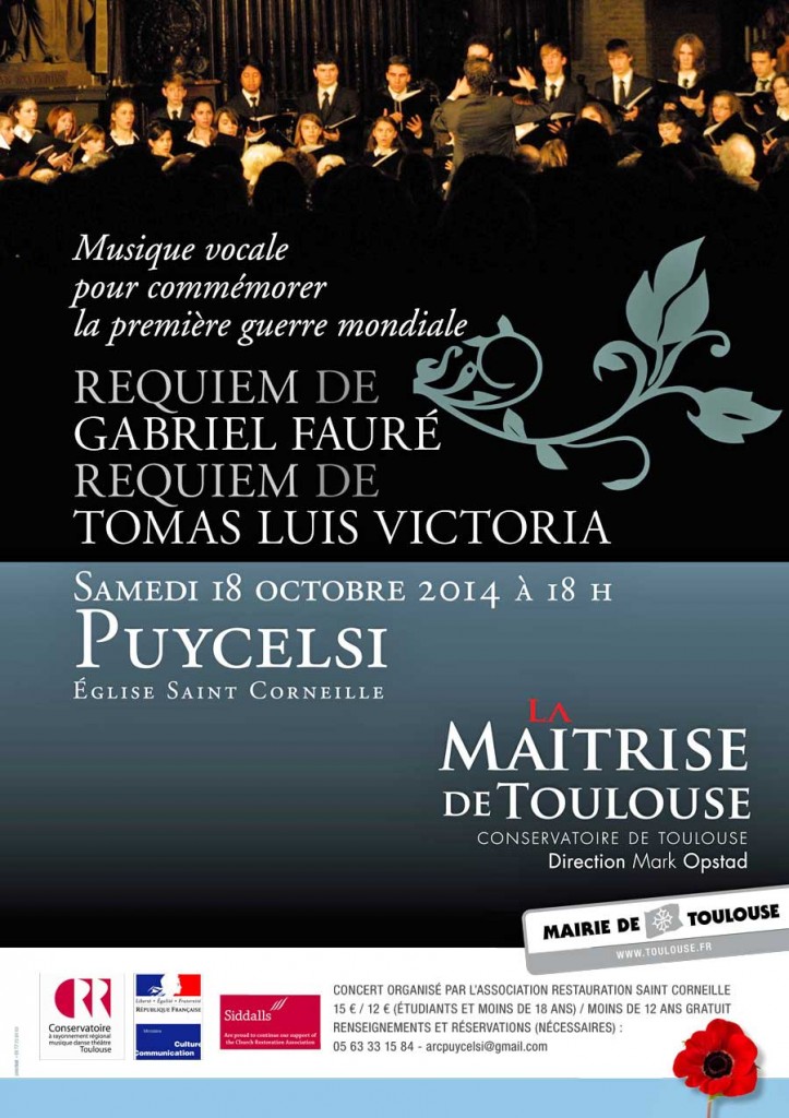 Concert de Musique vocale pour commémorer la 1ère guerre mondiale le samedi 18 octobre 2014 à 18h00.