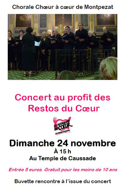 La Chorale Chœur à Cœur de Montpezat chantera le Dimanche 24 novembre 2013 à 15h au Temple de Caussade.