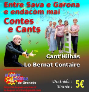 Pour la modique somme de 5€ vous vivrez une soirée en toute simplicité et goûterez à la poésie de cette langue millénaire qui chante et nous donne notre accent. Nous partagerons à l’issue du spectacle quelques gâteaux et le vin de Bernat Bergé : Lo Bernat Contaire, conteur de la soirée.