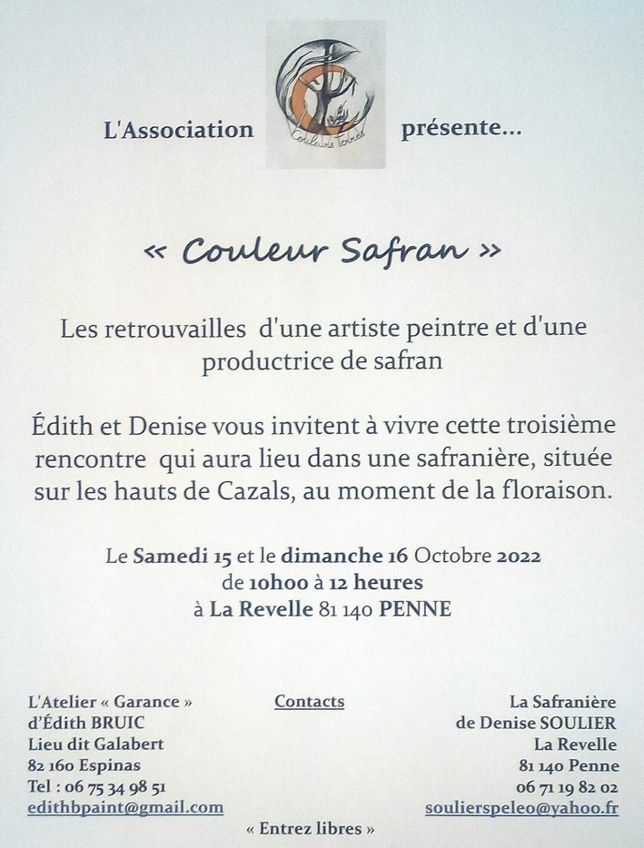 Samedi 15 et dimanche 16 octobre 2022, de 10h. à 12h. à La Revelle.