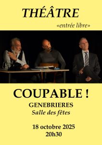 Vous y verrez COUPABLE : une pièce de théâtre pour 3 acteurs talentueux et une comédienne étourdissante dans un suspense policier qui vous laissera pantois.