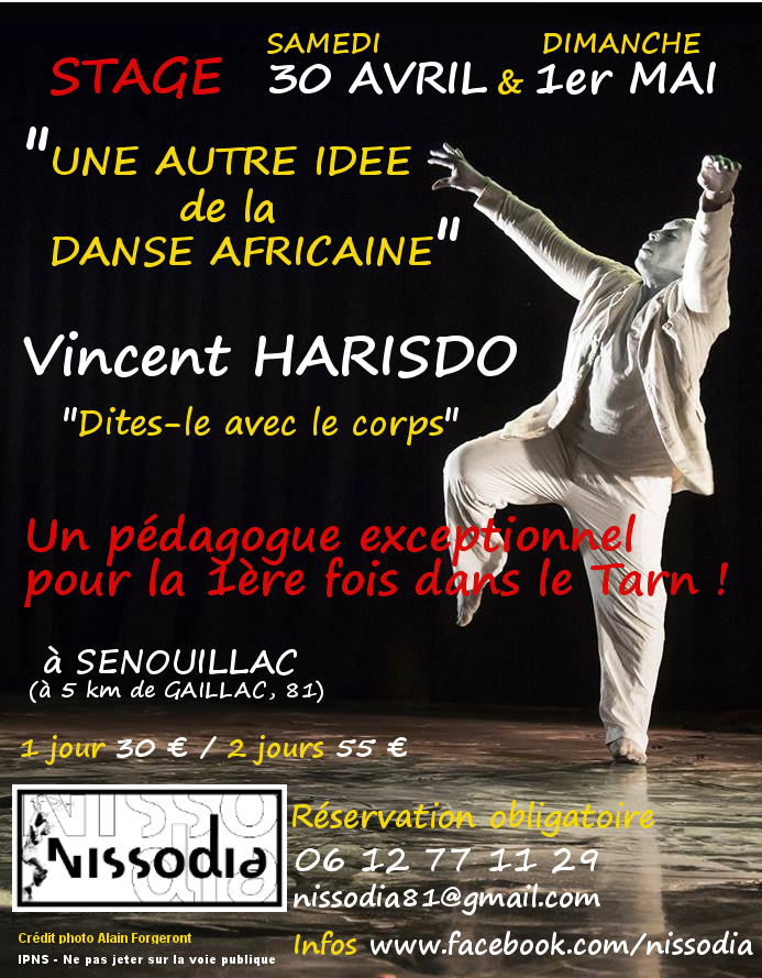 14h00-17h00 : Stage « Une autre idée de la danse africaine » avec Vincent Harisdo (Senouillac)