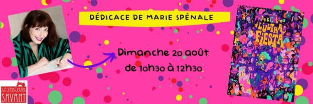 Vous avez entre 8 et 10 ans, et vous aimez faire la fête (ça fonctionne aussi en âge mental), alors, le dimanche 20 août 2023, venez rencontrer Marie Spénale lors de la dédicace (dédicaces trop mimis au passage) de sa nouvelle BD jeunesse “Millie & Catsou à l’ultra fiesta”.