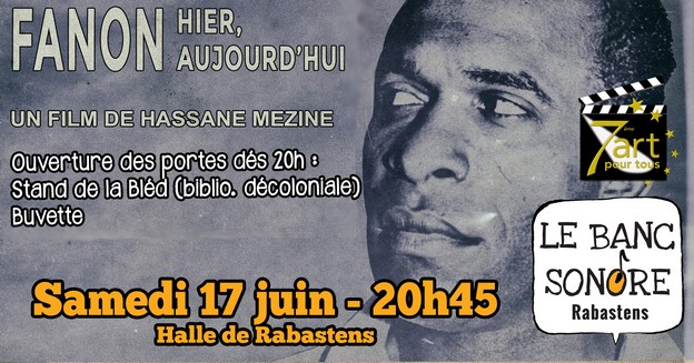 Fanon hier, aujourd’hui. Projection-débat organisé par le Banc Sonore en partenariat avec l’association 7ème art pour tous. Nous aurons la chance d’accueillir Hassane Mezine, le réalisateur pour un échange à partir de 20h, puis à la suite de la projection.