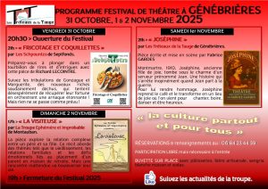Culture Génébrières Loisirs N° 235 - Octobre 2025 N° 236 - Novembre 2025 Du vendredi 31 octobre au dimanche 02 novembre