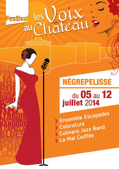 Organisé par l’association Nègr’Artis, le Festival « Les Voix au château » se déroulera du 5 au 12 juillet 2014, dans la cour intérieure du château récemment réhabilité de Nègrepelisse, lieu patrimonial remarquable du Tarn et Garonne.