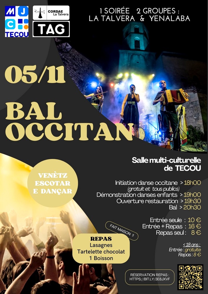 Samedi 5 novembre 2022, à partir de 18h. salle multiculturelleBal de La Talvera et Yenalaba