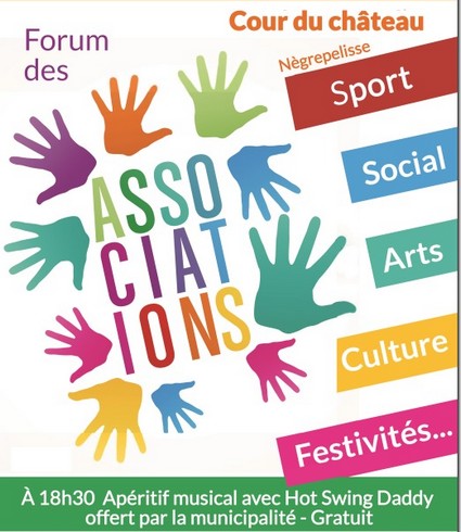 Comme chaque année, la commission municipale Vie Associative sous la direction de Laurence Verdier propose aux associations nègrepelissiennes de participer au Forum des Associations. Cet évènement se déroulera cette année le Samedi 3 septembre dans la cour du château, ouverture au public à 14 heures.