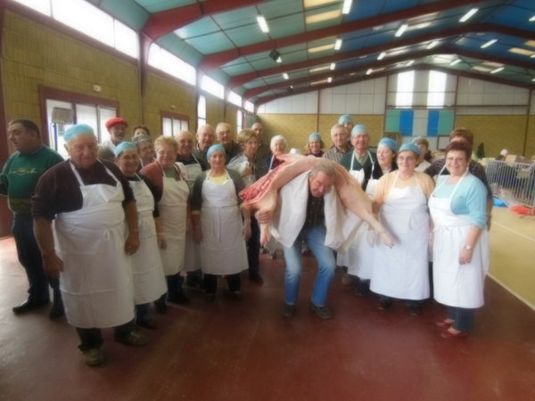 La fête du cochon, nous l’avons vécue à la maison…. Tuer le cochon était un évènement qui n’effrayait personne et annonçait, bien au contraire, vraiment une fête, avec du travail pour les adultes, certes, mais aussi avec du bonheur pour les enfants qui se retrouvaient pour jouer puis pour manger…Le repas de la fèsta porcala… il y avait beaucoup de monde autour de la table. Et, la fermière avait à cœur de donner une assiette avec un peu de charcuterie à emporter , chacun remerciait et disait « Vos farai tastar lo nòstre »… Voilà, une fête, des échanges et, bien sûr, de quoi manger tout au long de l’année.