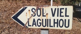 Entrée de VAREN en venant de LEXOS : chemin A GAUCHE avec ( le plus visible!) un panneau publicitaire « UNICOR » . Panneaux indicateurs Sol Vielh et Cimetière.