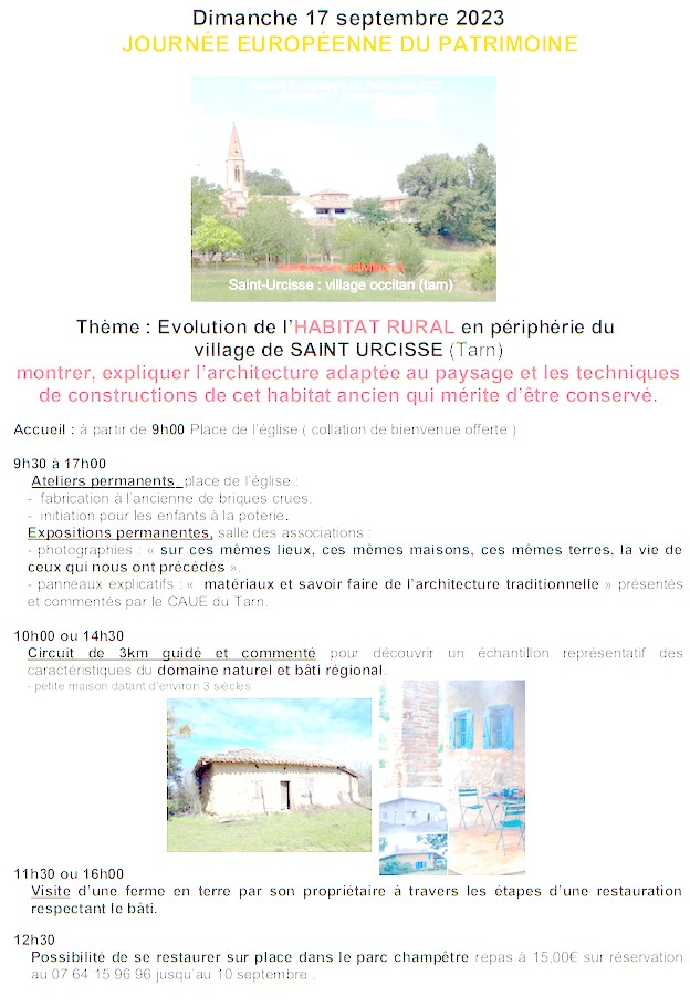 Dimanche 17 septembre 2023, dans le village, de 9h. à 18h.: