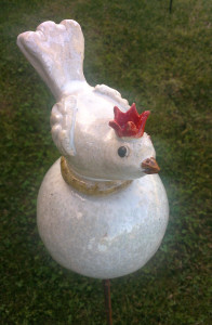 Cette année, elle a travaillé le grés (cuisson « résistante au gel »), pour sortir une collection qui envahit les jardins : mangeoires, nichoirs, baignoires à oiseaux, etc…