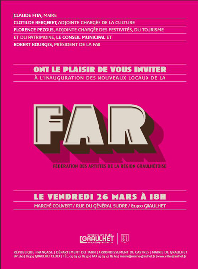 La FAR Graulhétoise a l’honneur de vous inviter à l’inauguration de ses nouveaux locaux, le vendredi 26 mars 2010, à partir de 18h.
